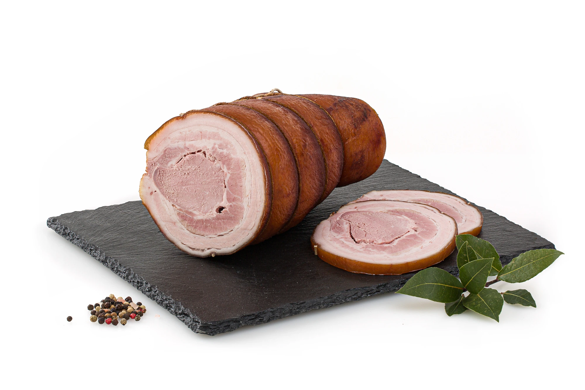 Soczysty boczek połączony z delikatną polędwiczką wieprzową, tradycyjnie wędzony i parzony. 100g produktu powstaje ze 128g mięsa wieprzowego – prawdziwa mięsność w każdym kęsie!