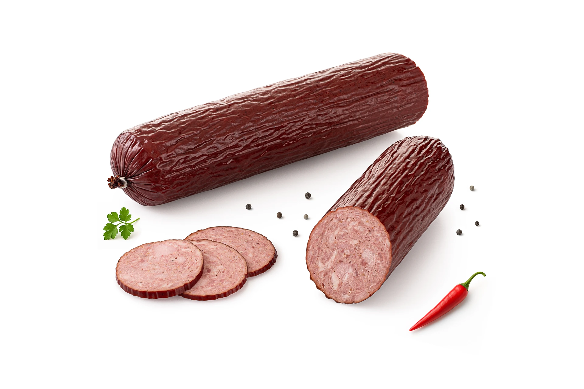 Kiełbasa wieprzowa o zwartej strukturze, intensywnym smaku i delikatnie podsuszona, by zyskać wyjątkową kruchość i głęboki aromat. Przygotowana według sprawdzonej receptury z dodatkiem czosnku i naturalnych przypraw, wędzona w dymie z drewna liściastego, a następnie powoli dojrzewająca.