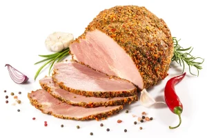 SKŁADNIKI: mięso wieprzowe z szynki (79%), woda, stabilizator: E451, izolat białka sojowego, substancja zagęszczająca: E407, wzmacniacz smaku: E621, białko zwierzęce wieprzowe (hemoglobina), przeciwutleniacz: E316, E301, sól, substancja konserwująca: E250.