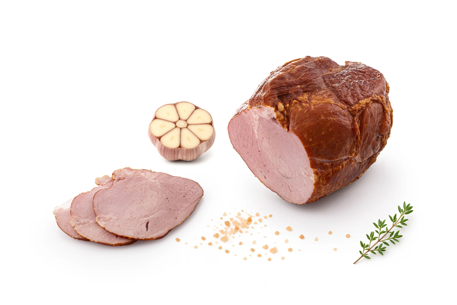 SKŁADNIKI: mięso wieprzowe z szynki (79%), woda, stabilizator: E451, izolat białka sojowego, substancja zagęszczająca: E407, wzmacniacz smaku: E621, białko zwierzęce wieprzowe (hemoglobina), przeciwutleniacz: E316, E301, sól, substancja konserwująca: E250.