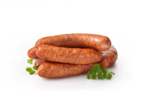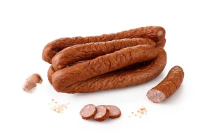 Kiełbasa wieprzowo – wołowa drobno rozdrobniona wędzona parzona w osłonce niejadalnej